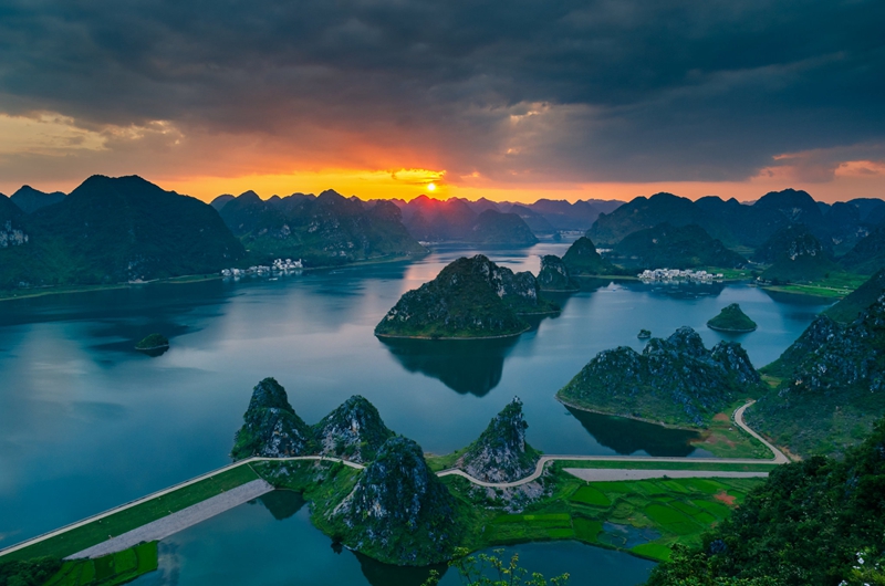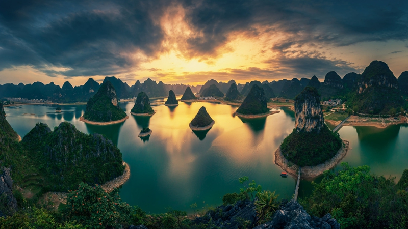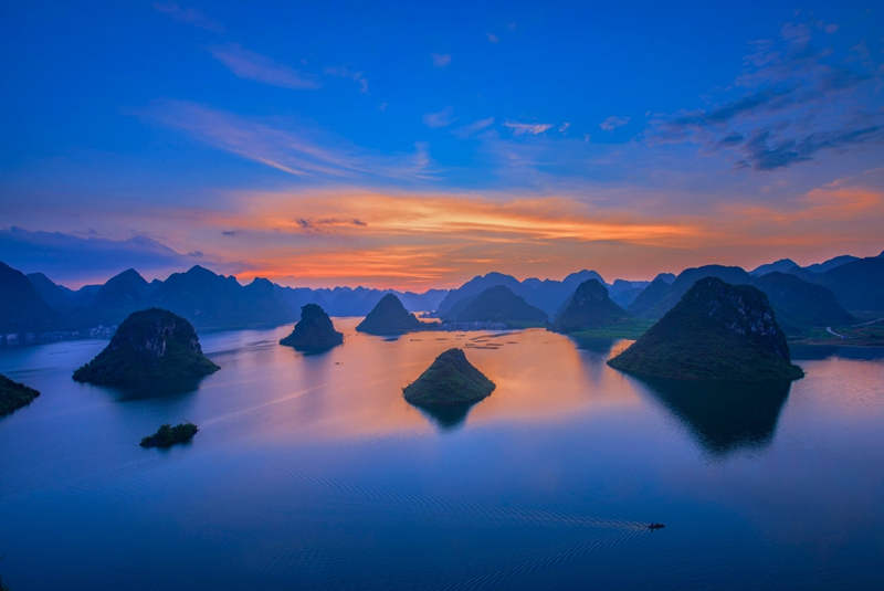 4、[渠洋湖]—它被称为“水上的桂林”,湖中有大小岛屿十多个,几百个壮族干栏式村寨掩映在湖边的绿树翠竹中,远离世俗,尽显原生态的美。