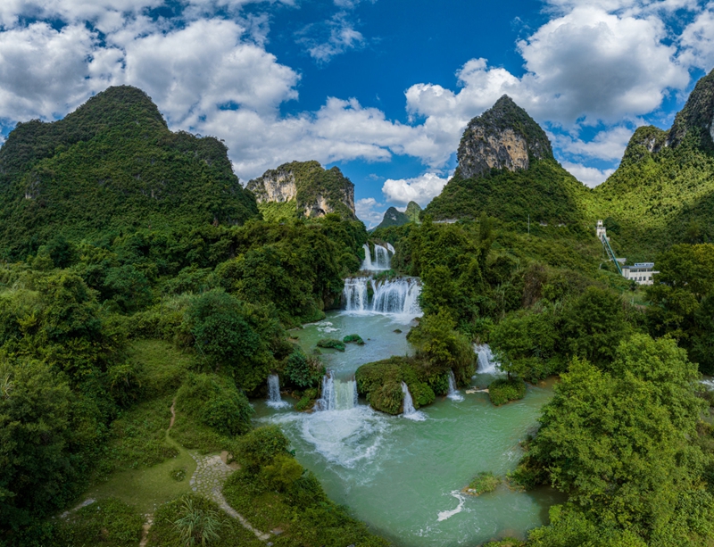 6、[德天瀑布]—它是排名亚洲第一、世界第四大的跨国瀑布,伫立于中越边境线上,气势磅礴,蔚为壮观,电视剧《酒是故乡醇》和《花千骨》的曾在这里拍摄外景。