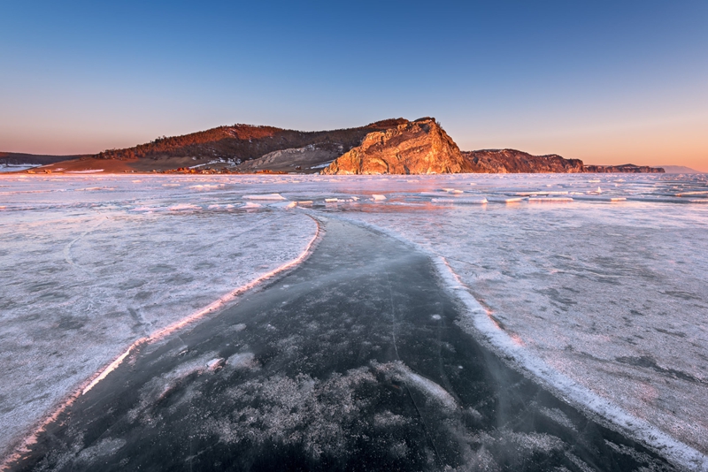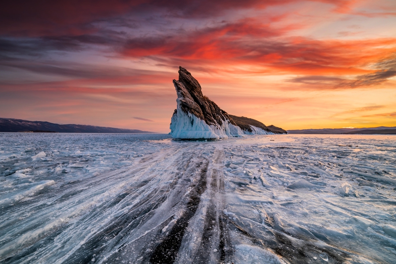 ○行程安排:今日的拍摄内容以奥利洪岛北线为主。早起前往贝加尔湖拍摄日出光影,结束后乘车前往奥利洪岛最北端合波角,沿途拍摄哈兰茨、鳄鱼岛、人脸山、三兄弟山等。抵达合波角后,下午便在此拍摄蓝冰风光,日落前返回胡日尔镇,继续拍摄萨满山日落光影。