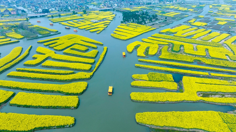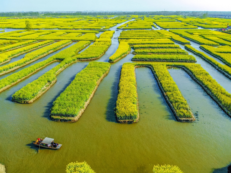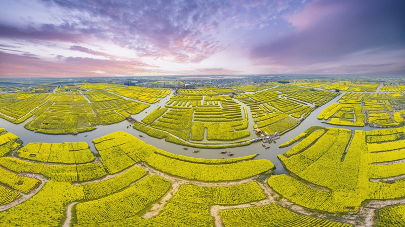 2、[千垛菜花风景区]—它以“垛田”特色地貌享誉全球,千百垛田漂浮于水中,云蒸霞蔚,形成独特的“河有万湾多碧水,田无一垛不黄花”的壮丽景观。