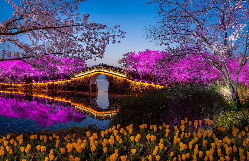 ○行程安排:早起乘车前往有“江南唯一的水上油菜花田”之称的千垛菜花风景区[门票团费已含],拍摄金灿灿的油菜花岛屿以及千岛样式的垛田景观等;午餐后乘车前往无锡市,抵达后入住当地酒店。下午适时出发,乘车前往郭沫若曾写诗“太湖佳绝处,毕竟在鼋头”来赞誉的鼋头渚风景区[门票团费已含]内的樱花谷,拍摄太湖畔的晚樱花及夜景风光等。