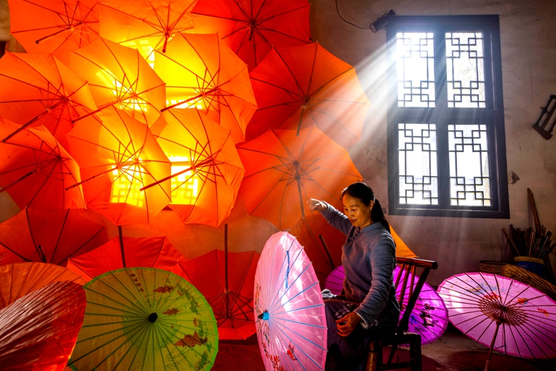 6、[泾县油纸伞]—这里已有四百余年的制伞传统,最早可追溯至明清时期,鼎盛时的泾县孤峰镇,曾有'十里长街百家伞'的盛况。
