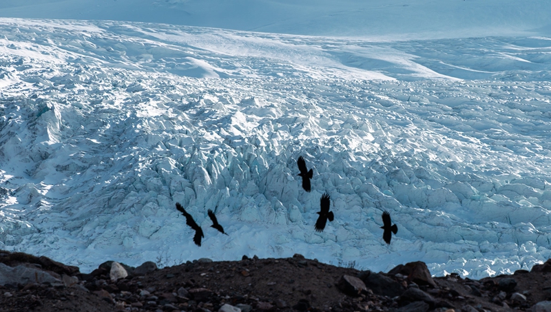 9、[仁龙巴冰川]—这是地球上少有的中低纬度海洋性现代山岳冰川,而且还处于尚未开发的状态,冰舌长达数公里,游客可以直接爬到冰舌上近距离走进真正的冰川,感受其规模与壮观。