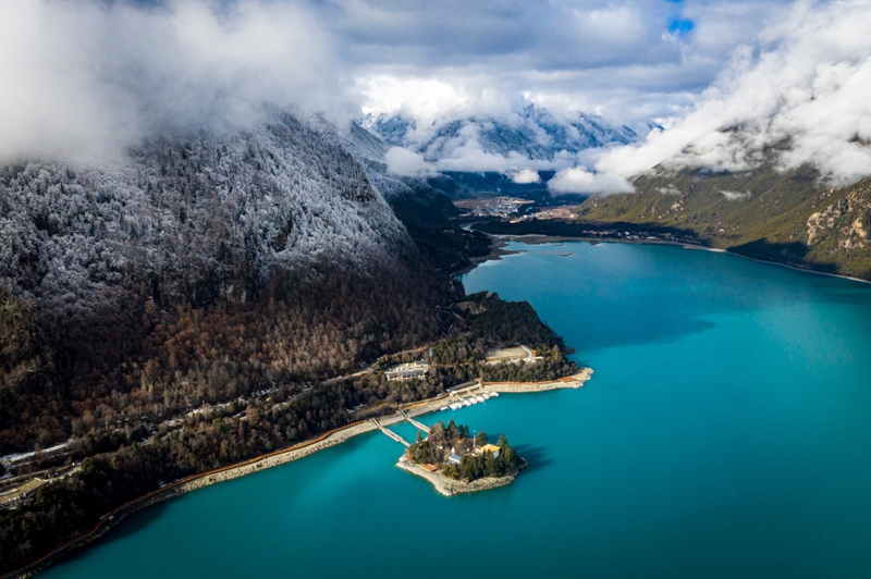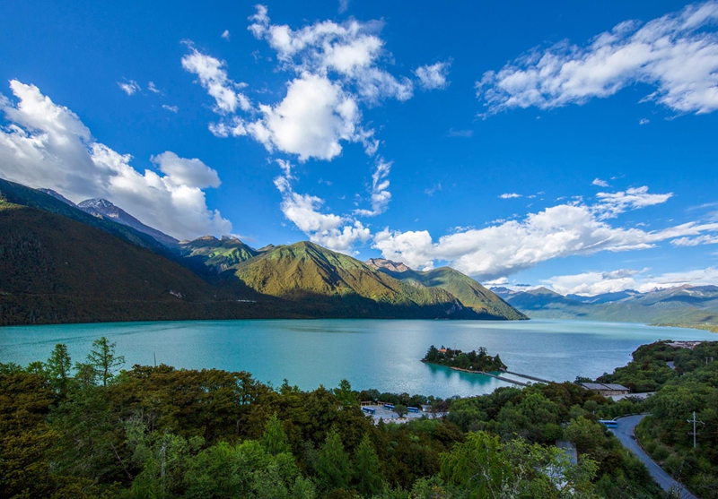 4、[巴松措]&[扎西岛]—巴松措是宁玛教派的神湖,它如绿松石般躺在雪山峡山谷间,景色如画;扎西岛是巴松措上的一座袖珍小岛,传言它是空心岛,浮在湖面上,岛上有一座措宗贡巴寺的玲珑庙宇,建寺距今已有1500多年的历史。