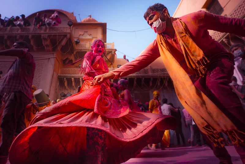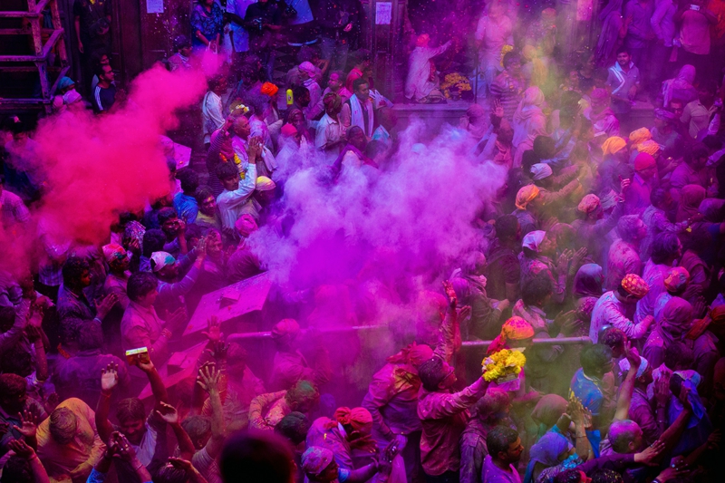 8、[洒红节Holi Festival]—它也叫“胡里节”或“色彩节”,是起源于印度的传统节日,在每年的2、3月间举行。这是印度每年最热闹又疯狂的一天,它是色彩与春光的约会,也是一场红粉弥漫的严肃狂欢。