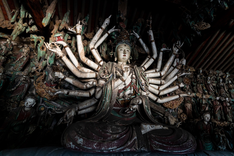 14、[小西天]—它是《黑神话·悟空》的取景地之一,其全堂彩塑是中国较为少见的彩色艺术群塑,具有不可估量的历史和艺术价值,堪称中国悬塑艺术博物馆。
