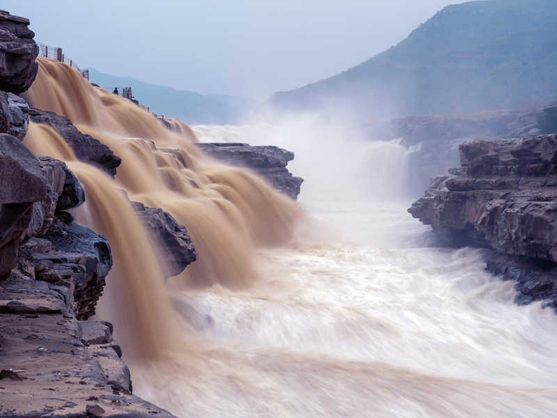 13、[壶口瀑布]—它是国人眼中的“黄河之心、民族之魂”,是世界上最大的黄色瀑布。奔腾咆哮、气势如虹的黄河在这里被它倏然收紧,“千里黄河一壶收”的绝世气质彰显的淋漓尽致。