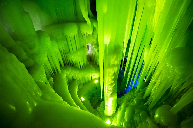 6、[万年冰洞]—它是国内至今发现占地面积最大的冰洞,形成至今约三百万年。洞内包括冰菩萨、冰钟、冰佛、冰瀑、冰柱、冰帘等奇特“冰雕”,为游客呈现出了瑰丽的冰雪世界。