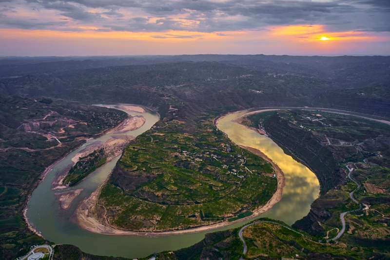 12、[乾坤湾]—它是黄河流转之间形成的一个“S”型大转弯,弯度达320度,呈现出山环水抱的景观,堪称“天下黄河第一湾”。