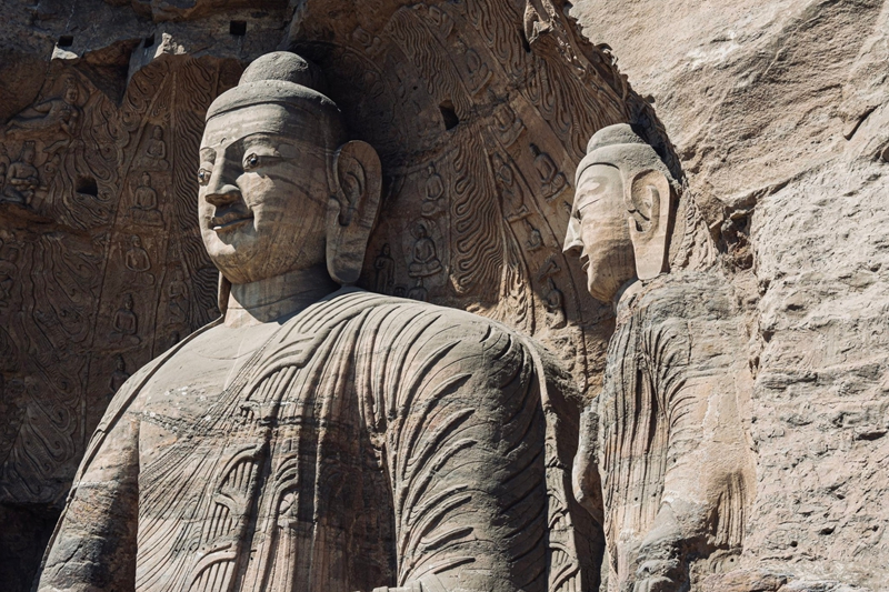 4、[云冈石窟]—它是中国的“三大石窟”之一,与龙门石窟、莫高窟齐名,其规模恢弘、气势雄浑、胡风胡韵浓郁,堪称公元5世纪中国石刻艺术之冠。