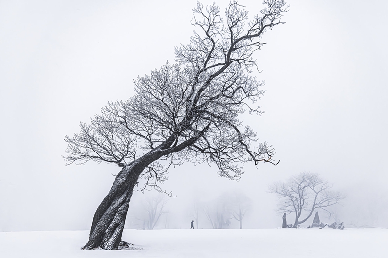 ○行程安排:早起徒步前往雪村后山拍摄日出光影、全景及缕缕炊烟,结束后我团将安排拍摄最原始的运输工具—牛拉爬犁、老农挑水、“雪国列车”绿皮火车出隧道等场景,并导拍具有农村生活气息的雪村环境人像。下午适时出发,乘车前往四方顶子,拍摄古树虬枝与雾凇,若遇云海可拍云雾与雪枝交织的全景。