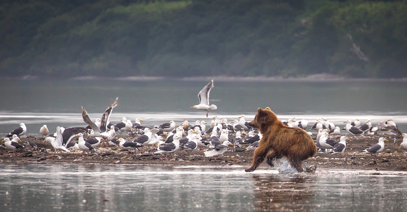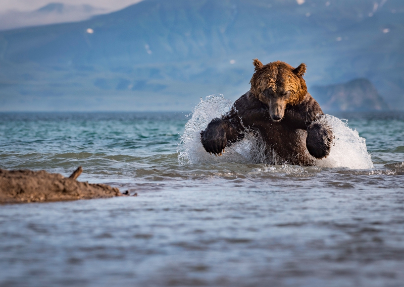○行程安排:早起乘车前往当地的直升机场,搭乘MI-8直升机[团费已含]飞往堪察加半岛的第二大淡水湖、欧亚大陆最大的红鲑鱼自然繁殖地—库页湖。飞行时长约一小时后,如果天气条件允许,直升机将在克苏达奇火山停留,影友们可以徒步游览位于火山口中的深蓝色火山湖以及美丽瀑布等。适时结束,然后继续乘坐直升机飞往库页湖,抵达后午餐。餐后,在我团专门聘请的经验丰富的武装护林员[团费已含]的保护下乘坐快艇驶向湖中,近距离拍摄棕熊的捕猎场景等。