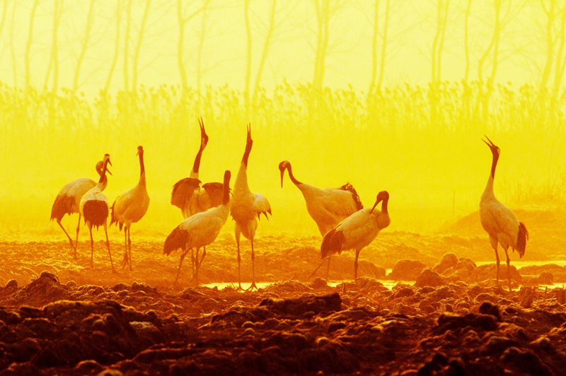 ○行程安排:早起乘车前往丹顶鹤湿地公园,拍摄丹顶鹤、鸬鹚、豆雁、野鸭等鸟类及滩涂晨曦光影;午餐后再乘车前往有着“世界上面积最大的潮间带湿地”之称的条子泥湿地公园,这里以潮汐绘就的“森林”奇观闻名于世,抵达后深入其核心区域拍摄壮观的潮汐树风光、空中翱翔的候鸟群以及日落光影下鎏金色的滩涂湿地等。