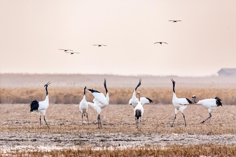 3、[丹顶鹤湿地公园]—这里是全球野生丹顶鹤种群规模最大的越冬栖息地,区域内栖息有丹顶鹤等大量鸟类及野生动物,素有“鸟的天堂,动物王国”之称。