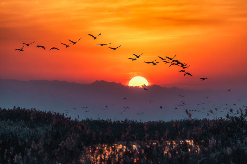 ○行程安排:早起乘车前往江苏省盐城市的野鹿荡,拍摄麋鹿群、候鸟群等直至日落,结束后再乘车前往盐城市住宿。