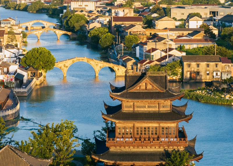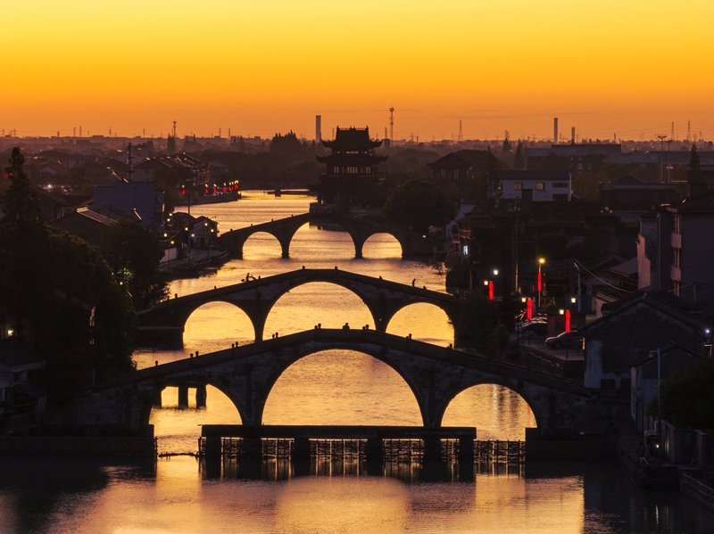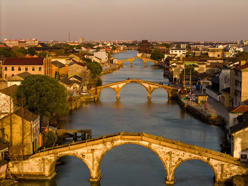 4、[双林古镇]—该古镇以“双林三桥”景观群而闻名,由化成桥、万元桥、万魁桥组成,三桥横跨同河相距不足400米,构成了江南罕见的桥梁建筑奇观。站在桥上,看乌篷船从拱洞下穿行,倒影如画如诗。
