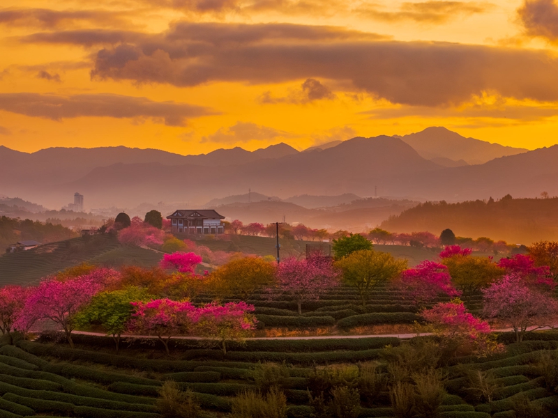 ○行程安排:早起乘车前往樟脚村,拍摄五彩石头城风光、石头厝、曲径通幽的巷道、斑驳的石墙等;结束后再乘车前往有着“世界最大的樱花园”之称的永福樱花园[含门票],在蓝天白云下拍摄千亩茶园、樱花漫天、远山、民居、绿草红花等绝色风光。