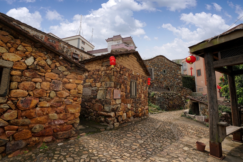 2、[樟脚村]—这里有很多石头垒砌而成的房屋群,在山坡上一层层上下重叠、一幢幢首尾相连的“石头厝”,俨然是一座古城堡,宛如一幅美丽的油画卷。