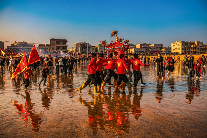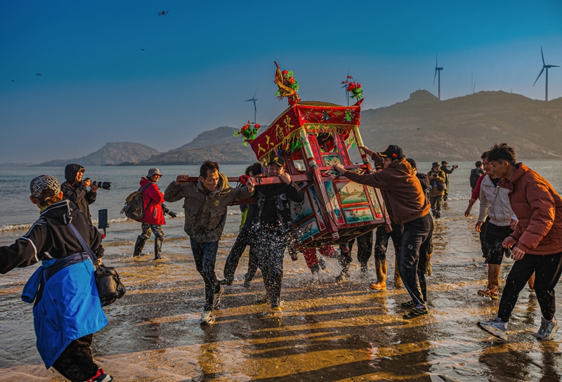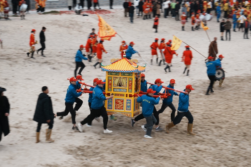 ○行程安排:早起先乘车到莆田市石城码头,再换乘轮渡[含轮渡票]前往南日岛,抵达后再乘车前往浮叶村拍摄一年一度的莆田“闹元宵”民俗活动。今日的主要拍摄内容是渔家“抬神冲海”民俗,包括但不限于起乩请神、神明出游、彩旗、锣鼓、鞭炮开道、神轿冲海等。午餐自理。