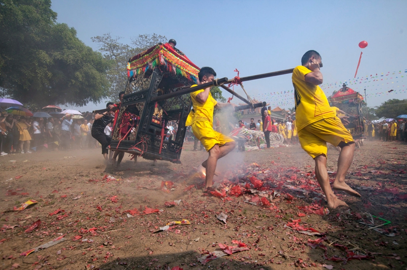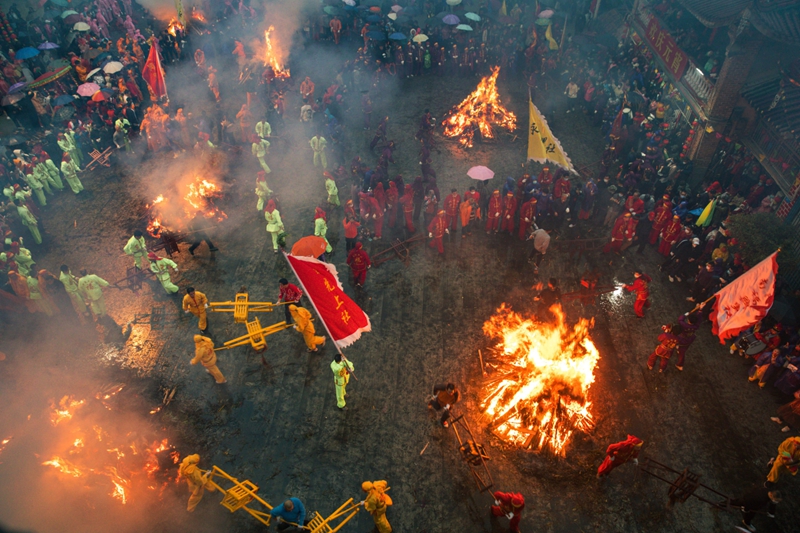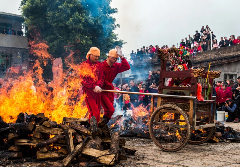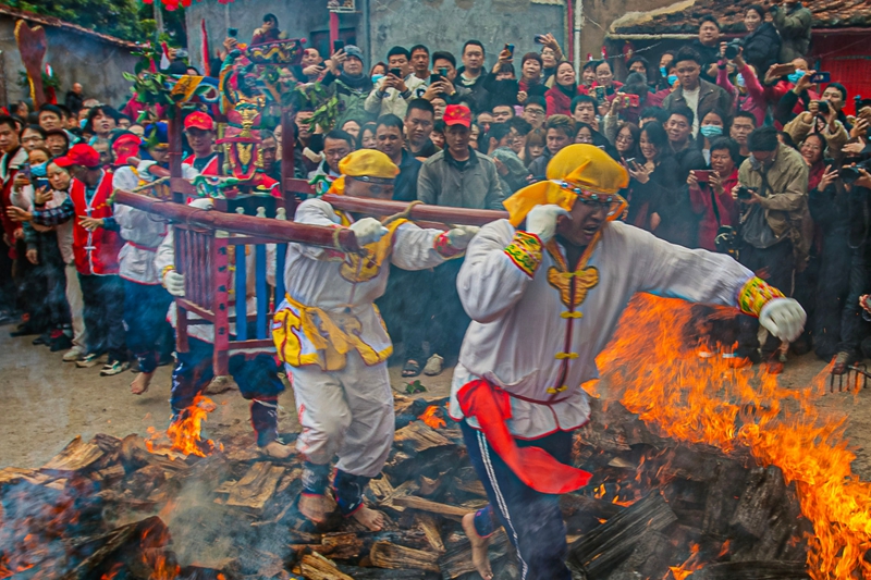 ○行程安排:早起乘车前往松东村拍摄一年一度的莆田“闹元宵”民俗活动。今日的主要拍摄内容是“赤脚踏火”活动,包括但不限于队伍巡游、摆棕轿、赤脚踩火、火海穿行、游灯祈福等。午餐自理。