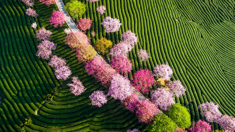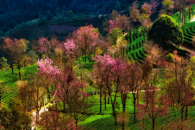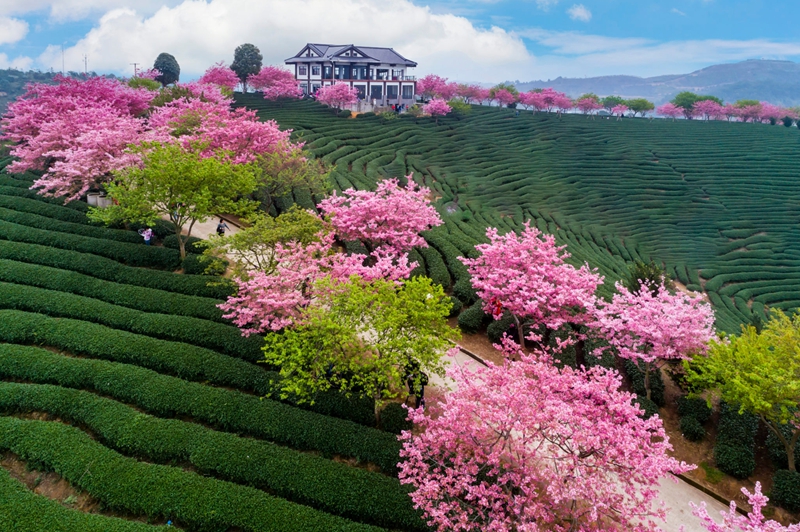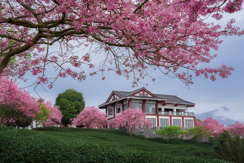 3、[永福樱花园]—这里是“中国最美的樱花圣地”,也有人说它是“世界最大的樱花园”,其种植樱花近10万株,品种多达42个。伴着千亩茶园的清香,樱花漫天飞舞,蓝天白云,绿草红花,宛如人间仙境 。